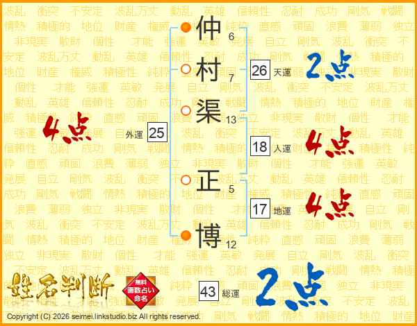仲村渠正博さんの天運は26画の2点!