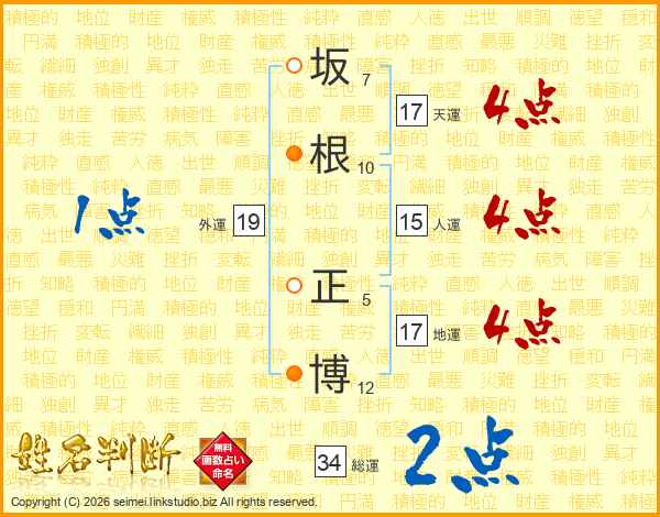 坂根正博さんの総運は34画の2点!