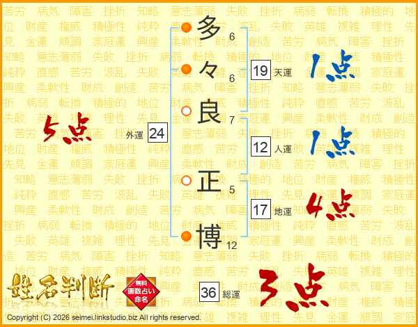 多(6画)々(6画)良(7画) 正(5画)博(12画)