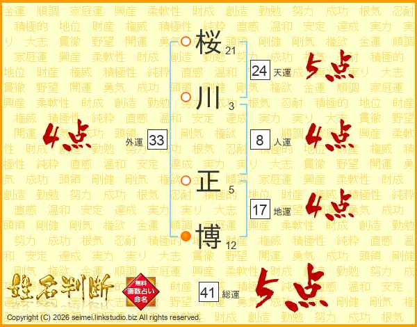 桜川正博さんの天運は24画の5点!