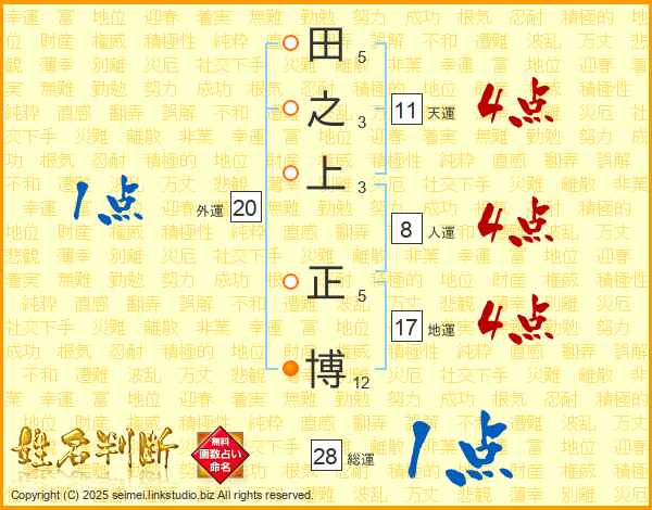 田之上正博さんの天運は11画の4点!