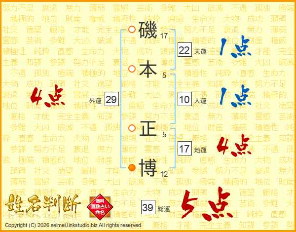 磯本正博さんの総運は39画の5点!