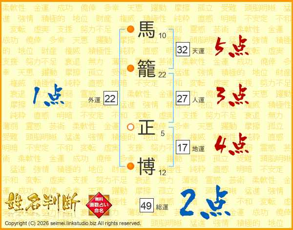 馬籠正博さんの天運は32画の5点!