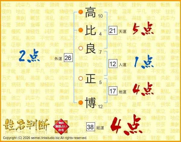 高(10画)比(4画)良(7画) 正(5画)博(12画)