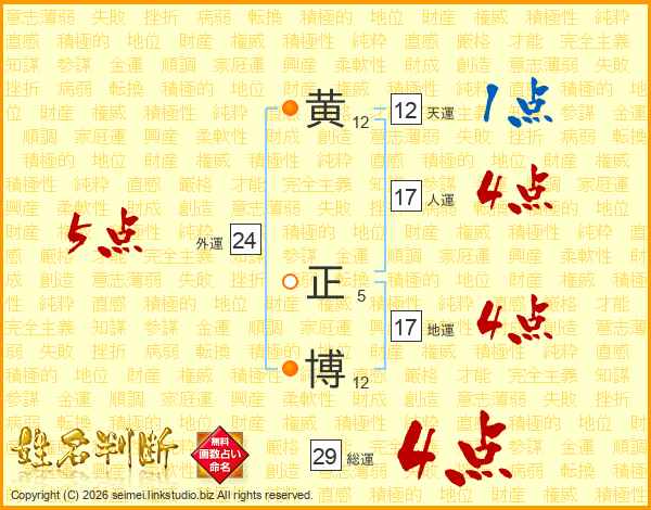 黄正博さんの総運は29画の4点!