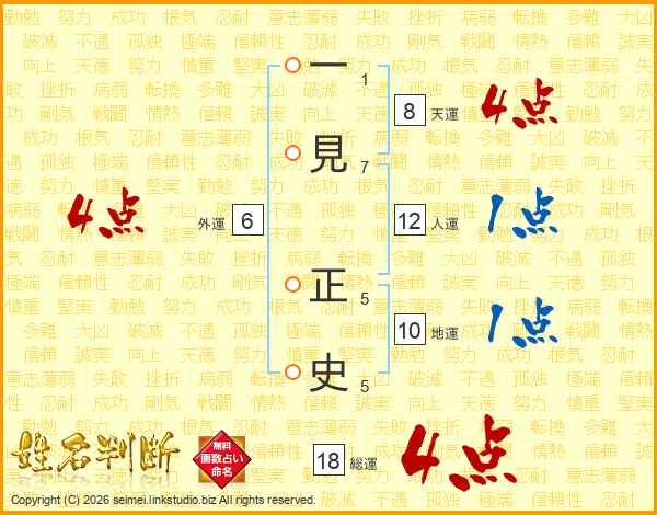 一見正史さんの総運は18画の4点!