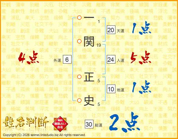 一関正史さんの人運は24画の5点!