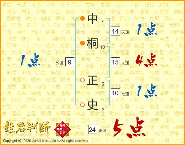 中桐正史さんの総運は24画の5点!