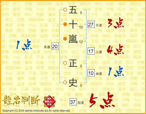 五十嵐正史さんの総運は37画の5点!