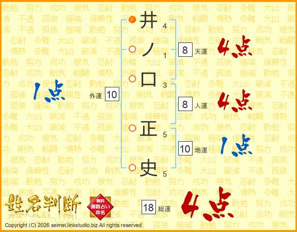 井(4画)ノ(1画)口(3画) 正(5画)史(5画)