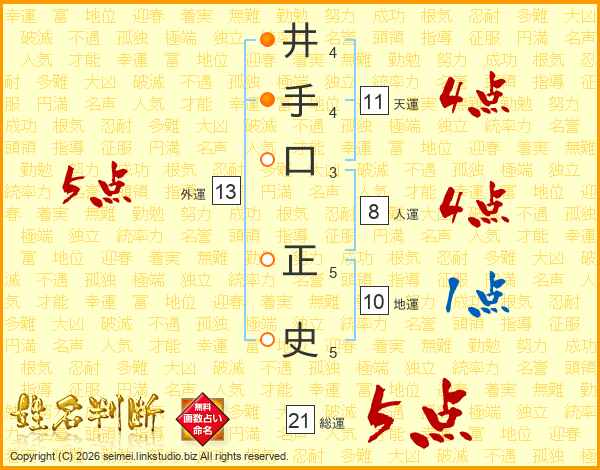 井(4画)手(4画)口(3画) 正(5画)史(5画)