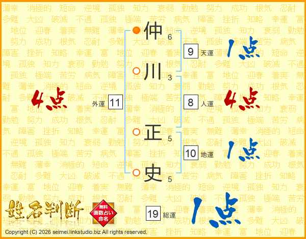 仲川正史さんの総運は19画の1点!