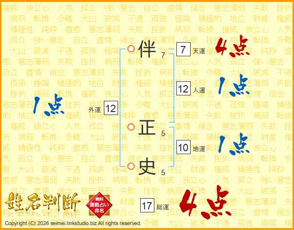 伴正史さんの総運は17画の4点!