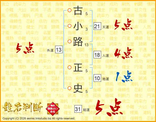 古小路正史さんの総運は31画の5点!