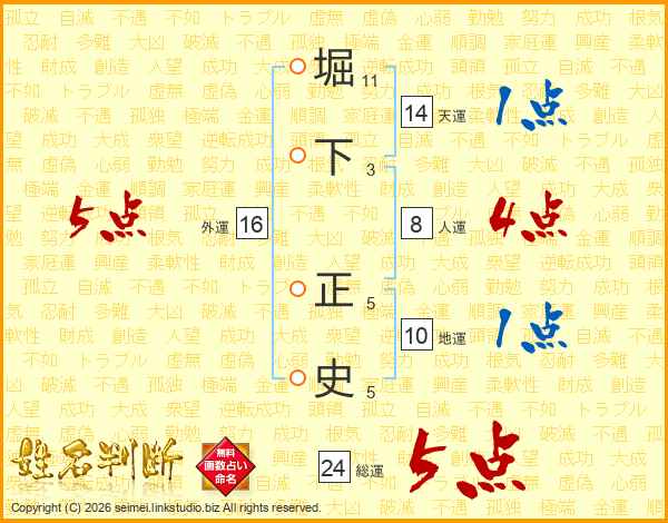 堀下正史さんの天運は14画の1点!