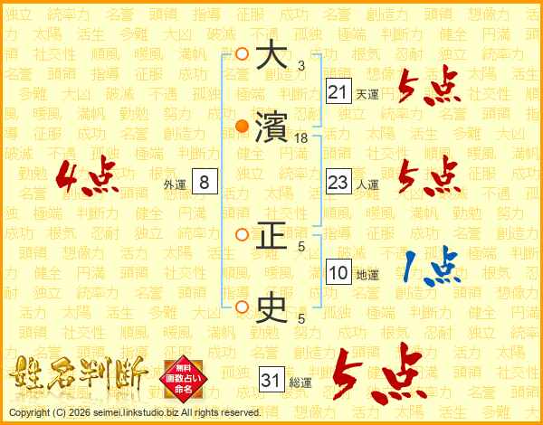 大濱正史さんの総運は31画の5点!