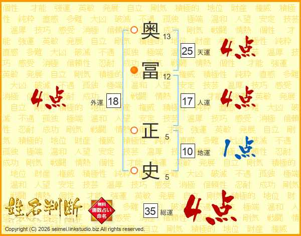 奥冨正史さんの総運は35画の4点!
