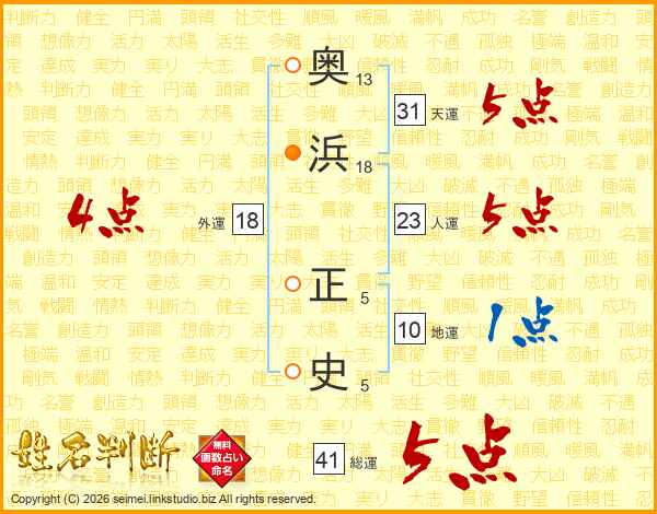 奥浜正史さんの天運は31画の5点!