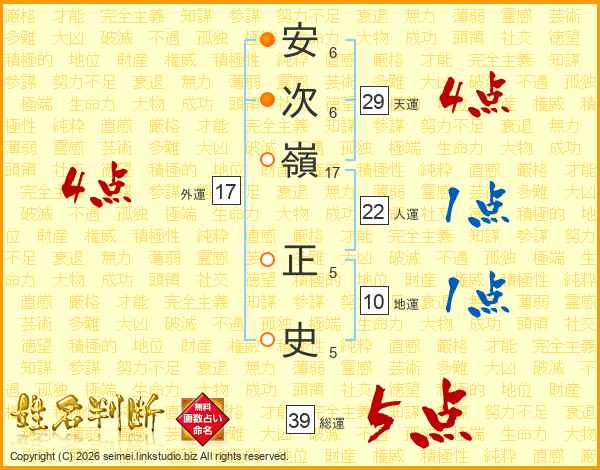 安(6画)次(6画)嶺(17画) 正(5画)史(5画)