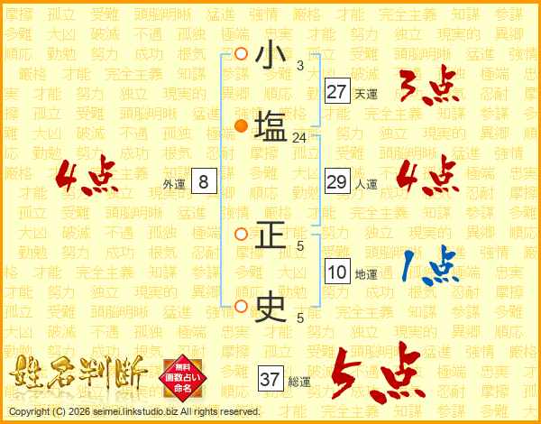 小塩正史さんの総運は37画の5点!