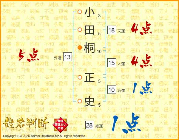 小(3画)田(5画)桐(10画) 正(5画)史(5画)