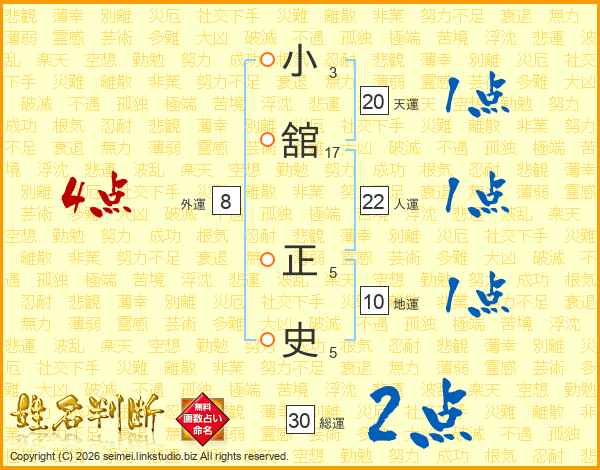 小(3画)舘(17画) 正(5画)史(5画)