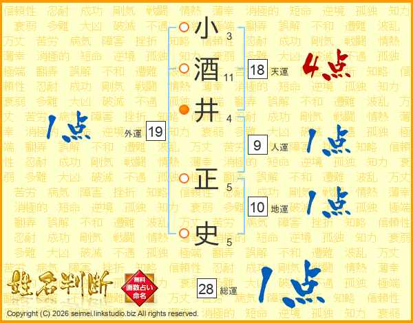 小(3画)酒(11画)井(4画) 正(5画)史(5画)