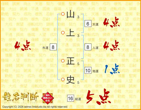山上正史さんの総運は16画の5点!