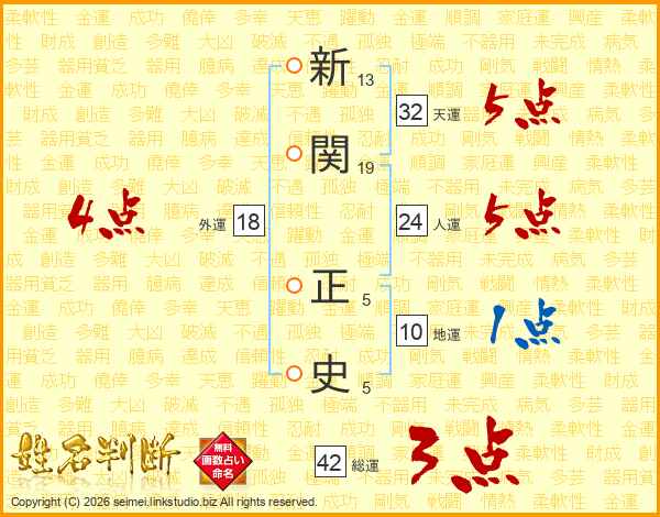 新関正史さんの人運は24画の5点!