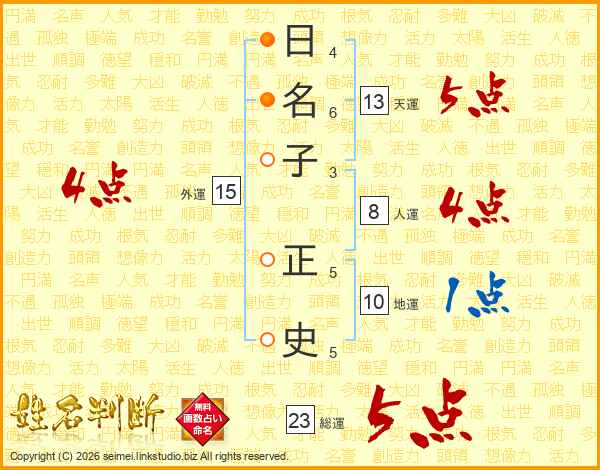 日(4画)名(6画)子(3画) 正(5画)史(5画)