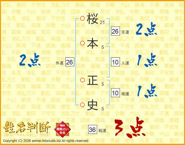 桜本正史さんの総運は36画の3点!