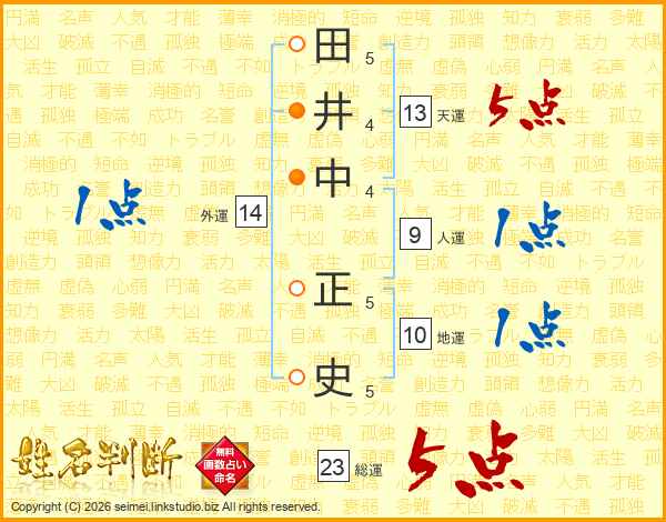 田(5画)井(4画)中(4画) 正(5画)史(5画)
