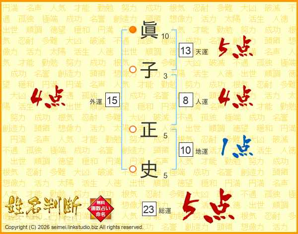 眞子正史さんの総運は23画の5点!