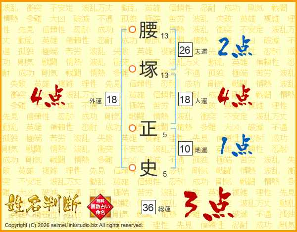 腰塚正史さんの総運は36画の3点!