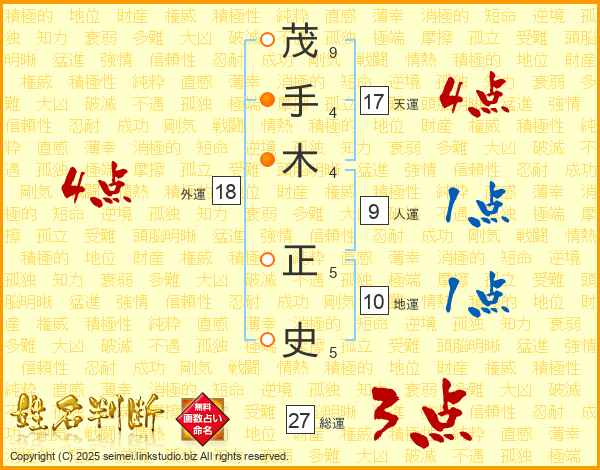 茂手木正史さんの天運は17画の4点!