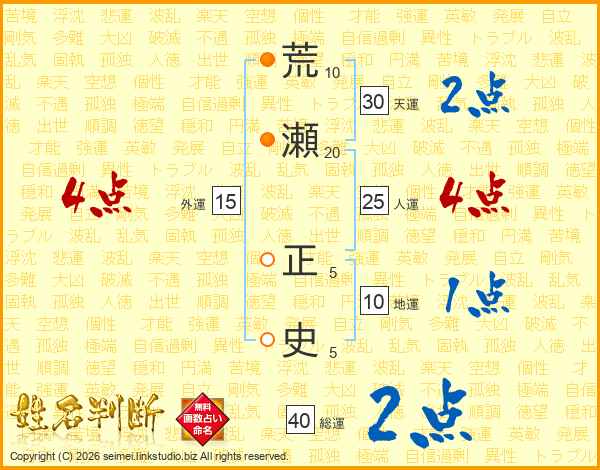 荒瀬正史さんの人運は25画の4点!