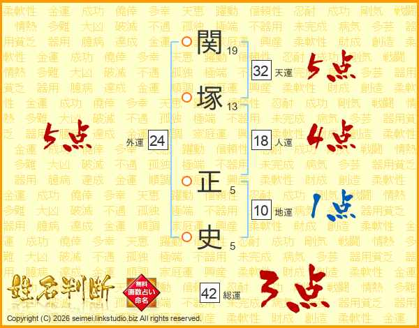 関塚正史さんの外運は24画の5点!