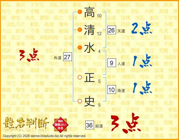 高清水正史さんの天運は26画の2点!