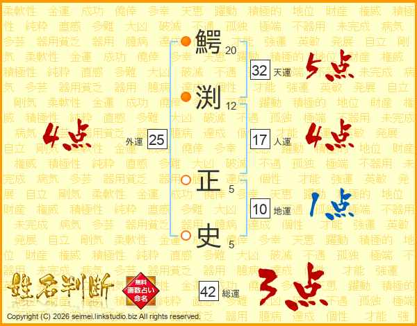 鰐渕正史さんの天運は32画の5点!