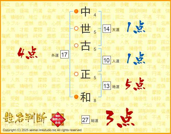 中(4画)世(5画)古(5画) 正(5画)和(8画)