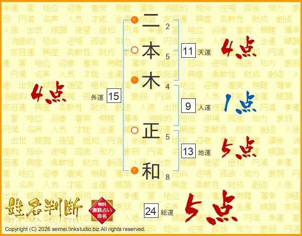 二本木正和さんの総運は24画の5点!