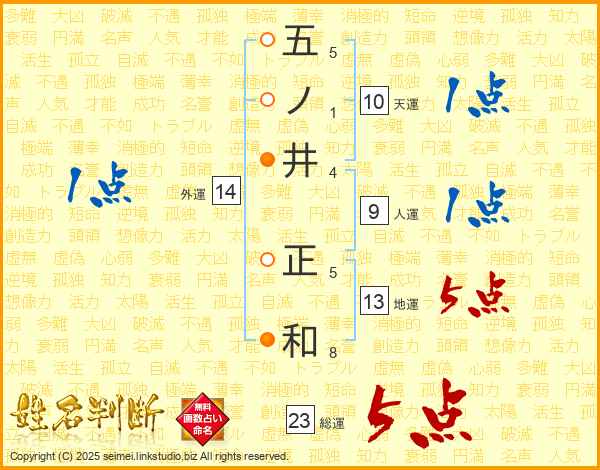 五ノ井正和さんの総運は23画の5点!