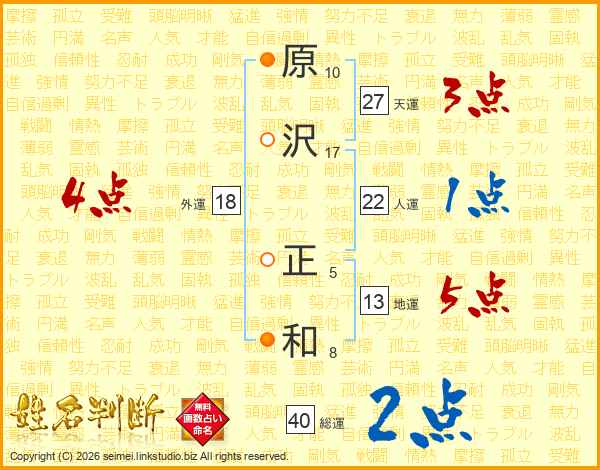 原沢正和さんの地運は13画の5点!