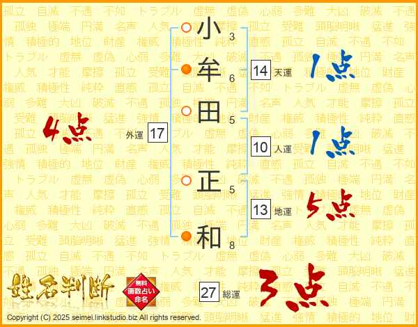 小(3画)牟(6画)田(5画) 正(5画)和(8画)