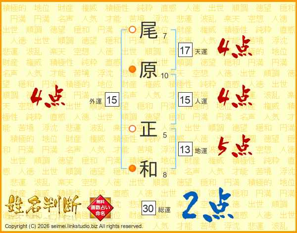 尾原正和さんの総運は30画の2点!