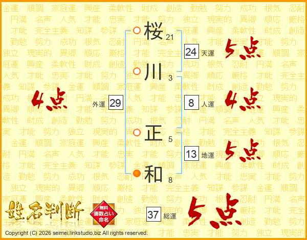 桜川正和さんの総運は37画の5点!