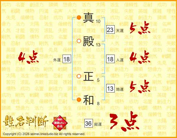 真殿正和さんの天運は23画の5点!