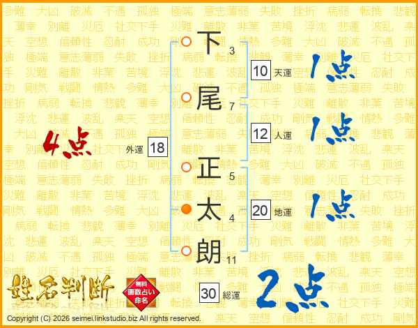 下尾正太朗さんの総運は30画の2点!