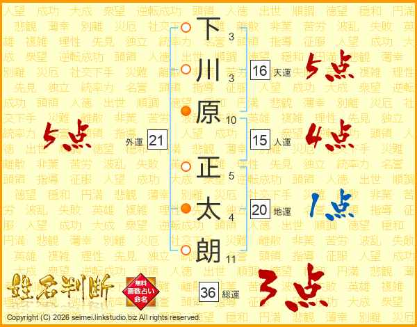 下川原正太朗さんの天運は16画の5点!