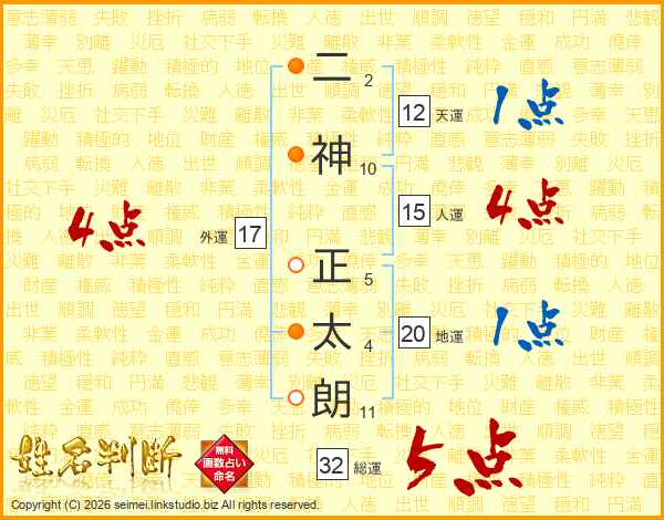 二神正太朗さんの総運は32画の5点!